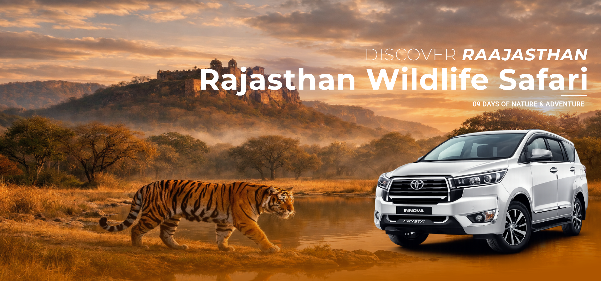 Rajasthan is not only about forts and palaces. It is also home to dense forests, tiger reserves, bird sanctuaries, and rugged landscapes. This 9-day Rajasthan Wildlife Safari is designed for travellers who want to experience nature, spot wildlife in their natural habitat, and enjoy scenic road journeys across the state.